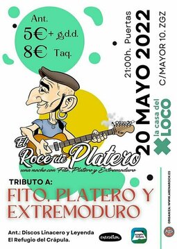Un concierto de gran intensidad, con un homenaje a Fito & Fitipaldis, Platero y Tú, y Extremoduro. Un repertorio de DOS HORAS Y MEDIA, repleto de sus temas más míticos, cuidando los arreglos originales y haciendo partícipe al público de cada momento. No te pierdas al Roce de Platero y su espectacular concierto.