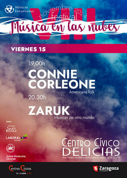 CONNIE CORLEONE (folk americano), cantante y compositora aragonesa que nos sumergirá en los sonidos folk-rock americanos y de sus canciones más personales. Con varios trabajos discográficos es una de las voces femeninas destacadas del panorama aragonés.