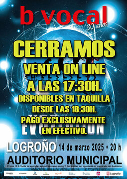 EVOZLUTION, un espectáculo en el que B VOCAL se adentra con el público en un impresionante viaje en el tiempo, desde los monasterios y las tabernas medievales hasta las discotecas y los grandes conciertos, pasando por los mejores momentos de la historia en los que la VOZ ha evolucionado a través de la música, llenando de energía y emoción a la humanidad. También el público podrá descubrir los momentos más personales y divertidos del grupo y disfrutar de su propia EVOZLUTION.