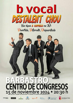 B Vocal presenta Destalent Chou, un nuevo espectáculo en el que el público va a poder disfrutar de tres ingredientes infalibles que convierten cada momento en una experiencia inolvidable: la música, la voz y el humor. Una fórmula mágica perfectamente mezclada, agitada y servida en una desternillante puesta en escena.