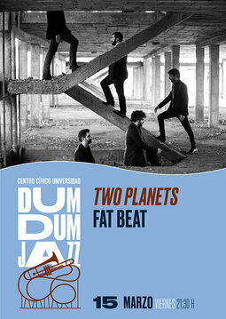 En TWO PLANETS, el quinteto de jazz progresivo FATBEAT! propone un extenso recorrido musical planteado en forma de tríptico que narra las aventuras de cinco amigos en una singladura cósmica de ida y vuelta a la tierra con un mensaje esencial para la humanidad.