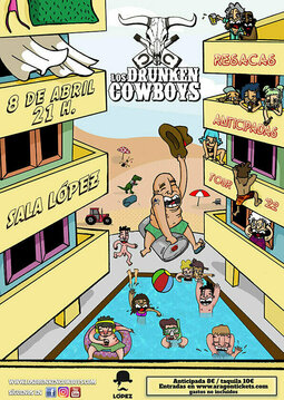 Los Drunken Cowboys empezaron a cabalgar en el año 2009 por tierras aragonesas a ritmo de su particular Western Etílico: American folk punk donde se mezclan las raíces más profundas de la música americana montañesa con ciertas reminiscencias irlandesas unidas a los ritmos del punk y el rock más acelerado.